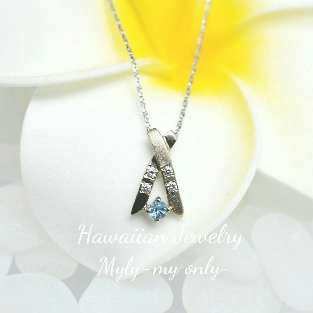Xダイヤ・アクアマリンペンダント