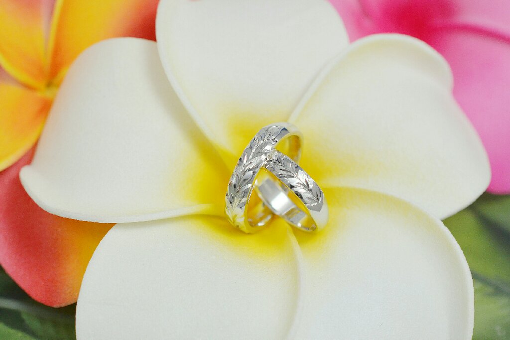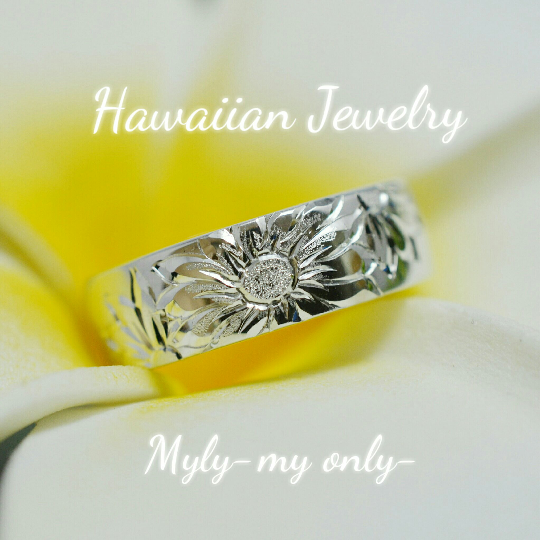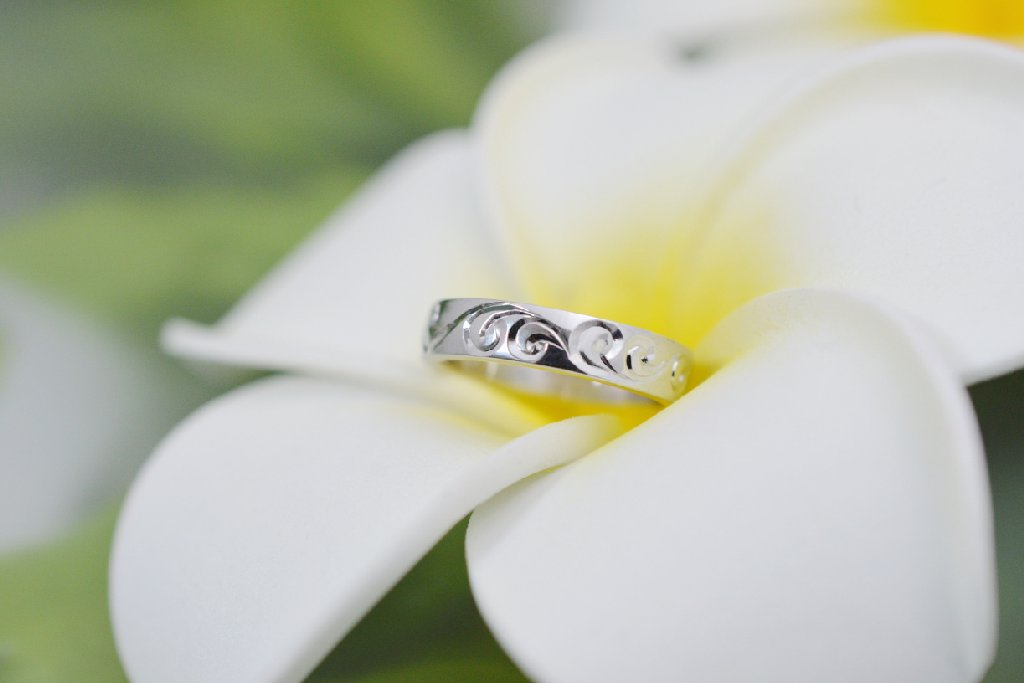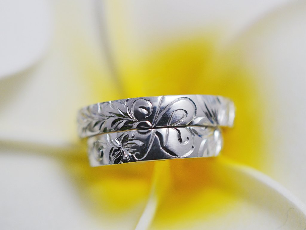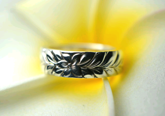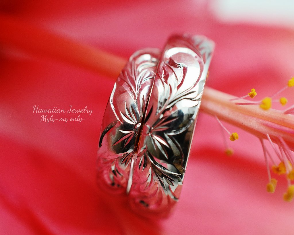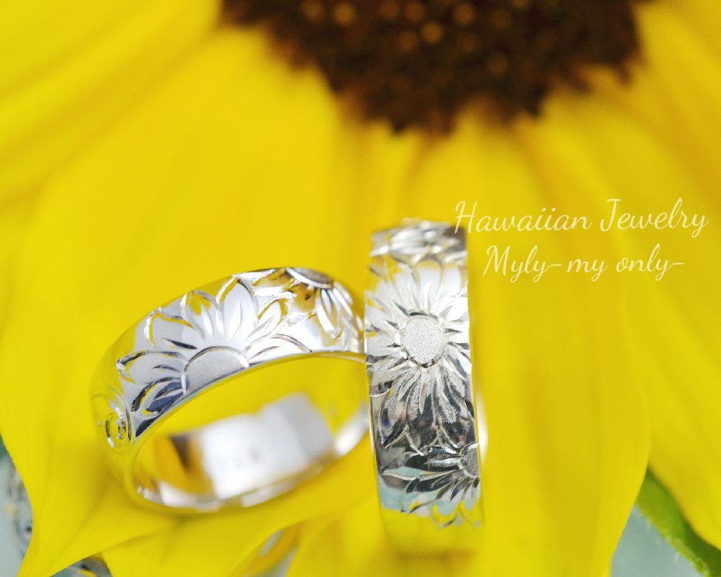 ディープリーマイレ絞りリング ひまわりの丘リング ハイビスカスマイレレイリング 2つで1つ合わせペアリング K18YG ダイヤモンド5石 プルメリアサンド スクロールシンプルリング マイレリーフ交互シャイニー K18YG マイレリーフ